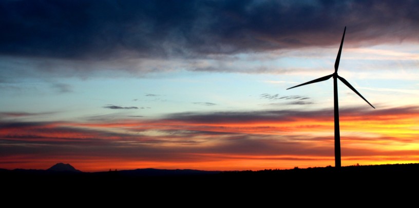 At the Wild Horse Wind Farm in eastern Washington state, dozens of giant wind turbines dominate the landscape near busy Interstate 90.
