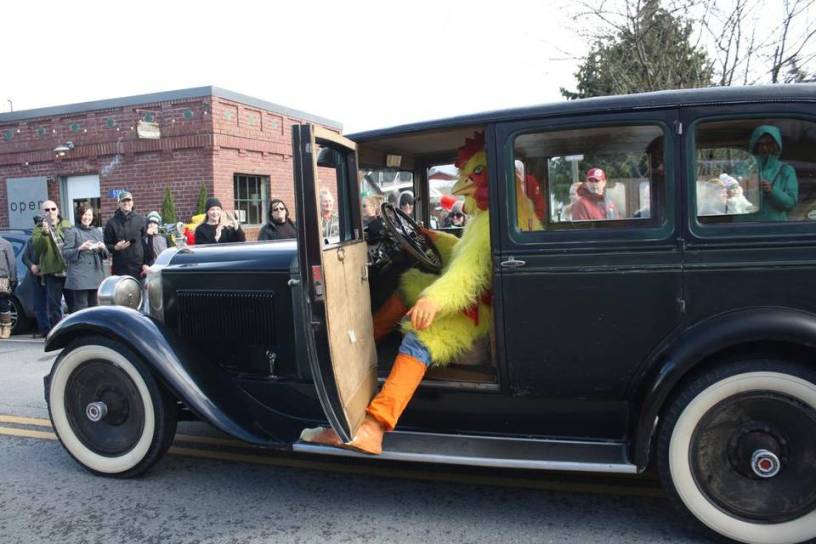 Regardless, the parade has become an attraction that draws people — many dressed as chickens — from across Western Washington, even though the entire event along Edison’s humble downtown lasts less than 10 minutes and covers less than 1/8th of a mile.